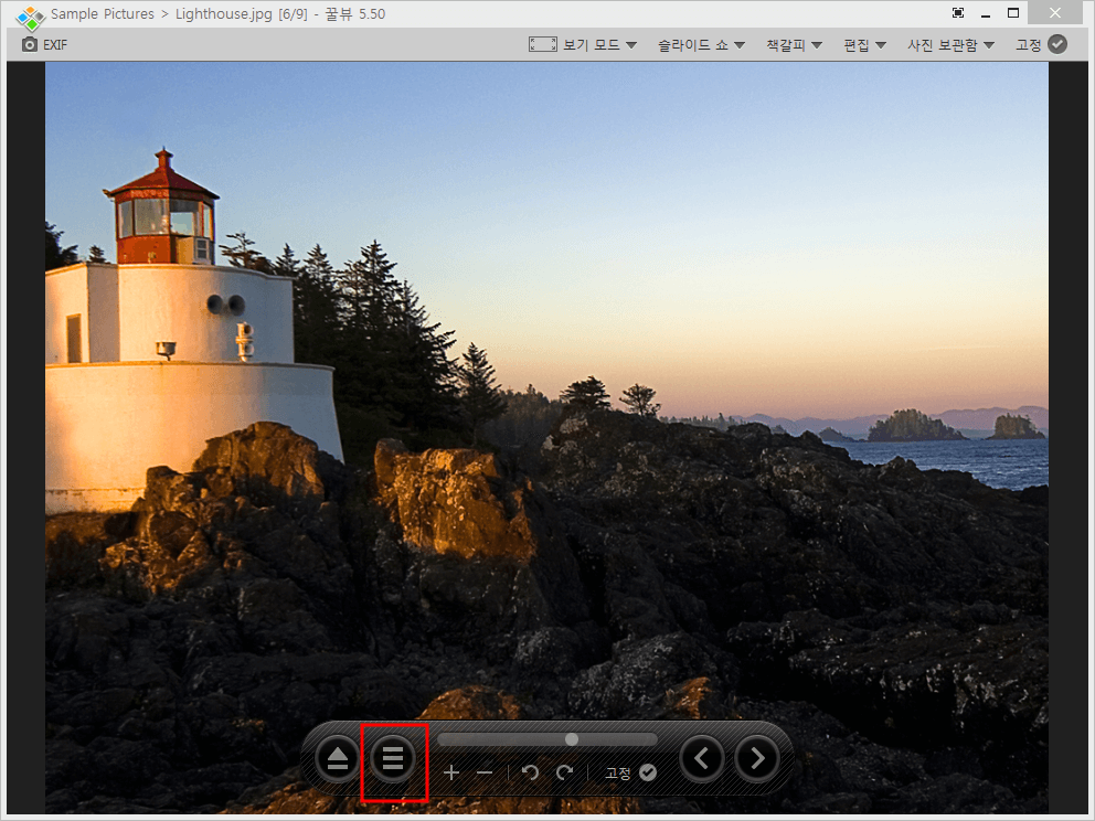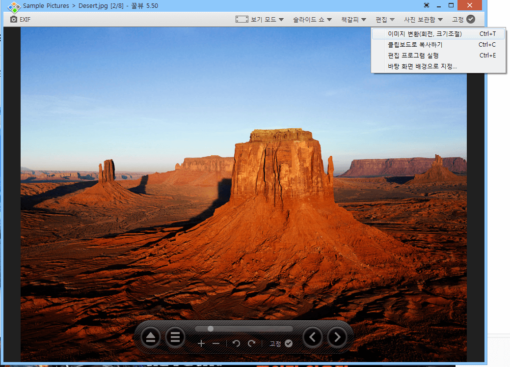 9. 보기 모드에는 작은 그림도 꽉차게 보기, 원본 크기로 보기 등 다양한 보기 기능이 있습니다.