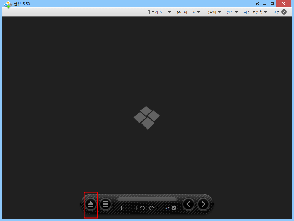 1. 꿀뷰를 실행합니다. 아래창이 나타나면 창 아래 빨간 박스를 클릭합니다.