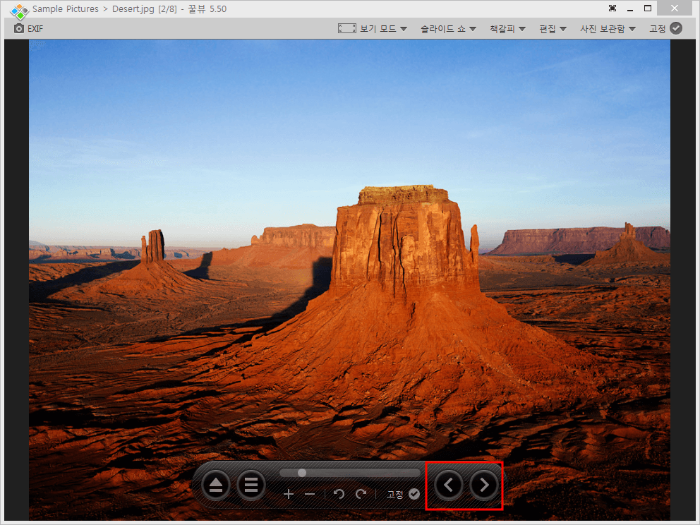 7. 아래 빨간 박스의 화살표는 폴더 내의 이전 사진 및 다음 사진을 볼 수 있는 버튼입니다.