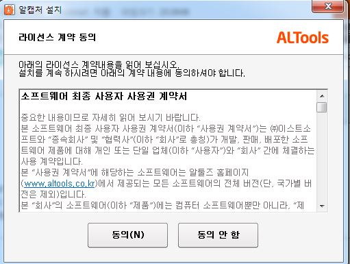 3. 알캡쳐 라이선스 계약 동의에 동의를 클릭합니다.