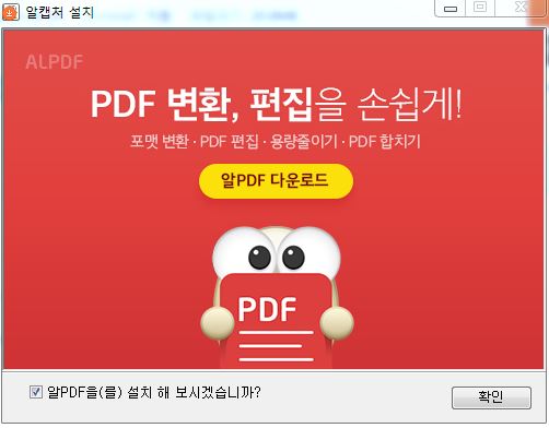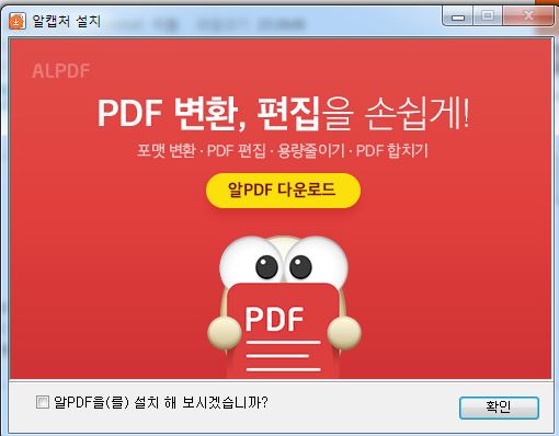 창 하단의 알 PDF를 설치 보시겠습니까?를 체크 해제해 주세요. 알PDF 사용을 원하시면 그대로 진행해 주세요.