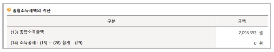 11. 아래 종합소득금액에 사업소득 명세와 근로소득, 연금소득 명세의 소득 금액 합계액이 자동으로 계산되어 보입니다.
