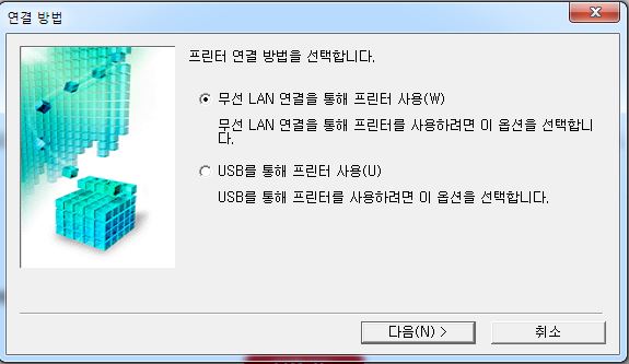 무선으로 프린터를 사용하였다면 무선 LAN 연결을 통해 프린터 사용을 선택합니다.