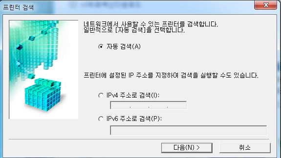 6. 프린터 자동검색 체크 상태 그래로 다음을 선택하면 자동으로 프린터를 검색합니다.