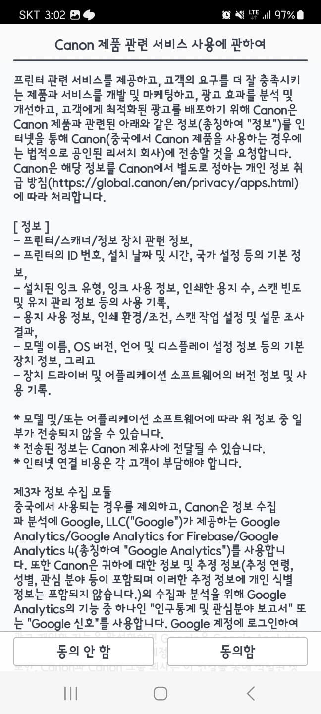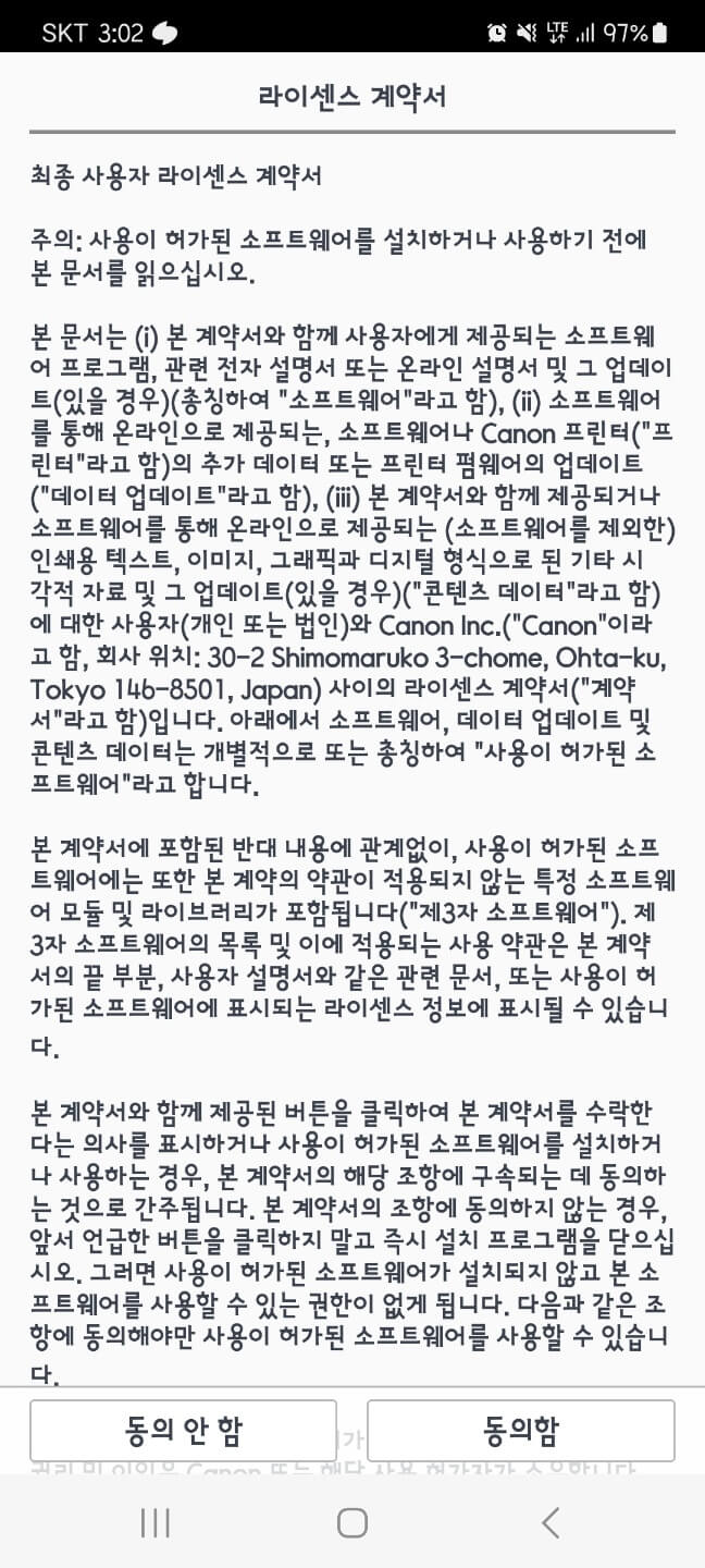 3. 라이센스 계약서 및 캐논 서비스 사용에 관하여 동의함을 클릭합니다.