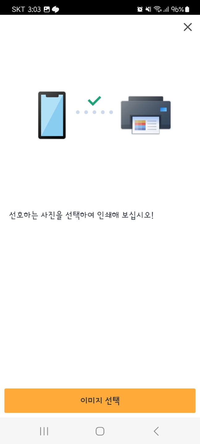 5. 앱에서 이미지 선택을 클릭 후 원하는 사진을 선택한 다음 인쇄(Print)를 누릅니다.