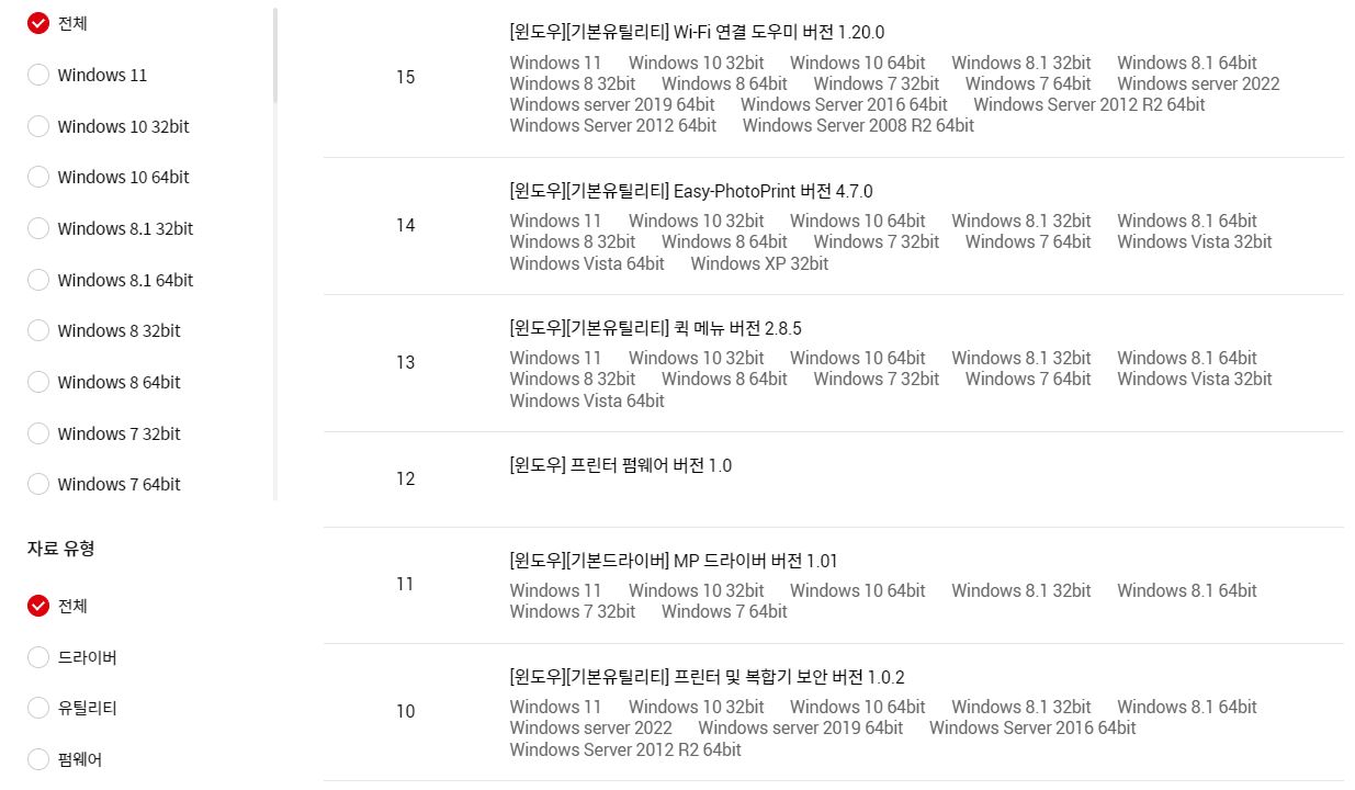 2. MP 드라이버를 클릭하여 다운로드합니다.