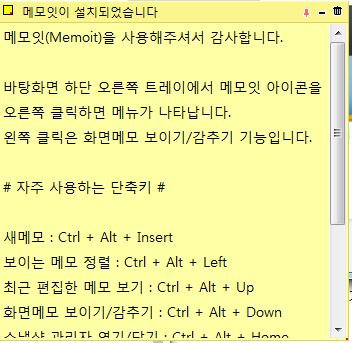 - 화면메모 보이기/감추기 : Ctrl + Alt + Down