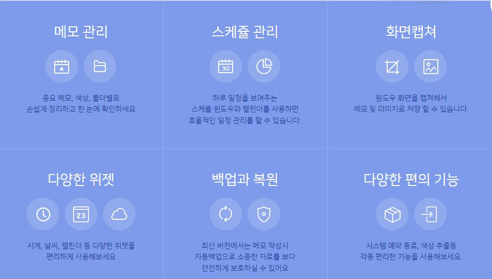 대표적인 컴퓨터 바탕화면 메모장인 메모잇에 대한 내용 및 다운로드는 아래링크에서 확인 가능합니다.
