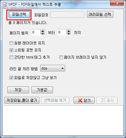 2. 상단의 [파일선택]를 클릭한 후, 텍스트를 추출하고자 하는 PDF파일을 선택 후 [열기]를 클릭합니다.