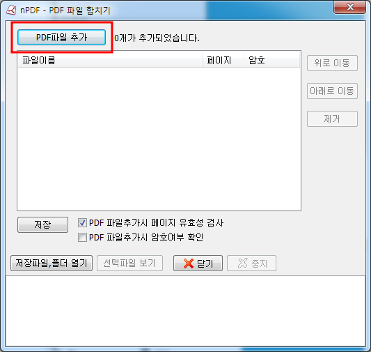 1. nPDF 유틸 도구를 실행한 후 [PDF 파일 합치기]를 선택 후 [다음]을 클릭합니다.
